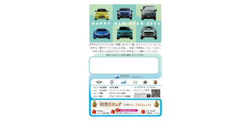 ルノー名古屋東では「初売りフェア」を開催!厳選した初売りならではの特選車をご用意。ガラガラ抽選会にSHINWAグループユーザーの方には、さらにもうひとつの抽選会のチャンスがあります。